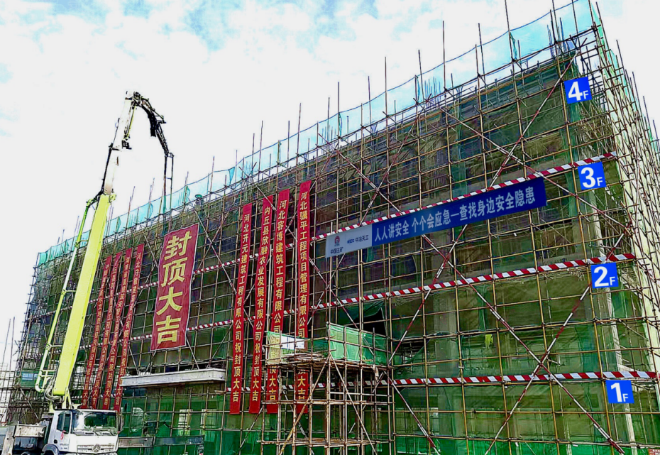 6月18日,渤海公司內丘縣中草藥產業園項目綜合樓順利封頂,標志著項目主體結構完成,開始全面進入二次結構及裝飾裝修施工階段。